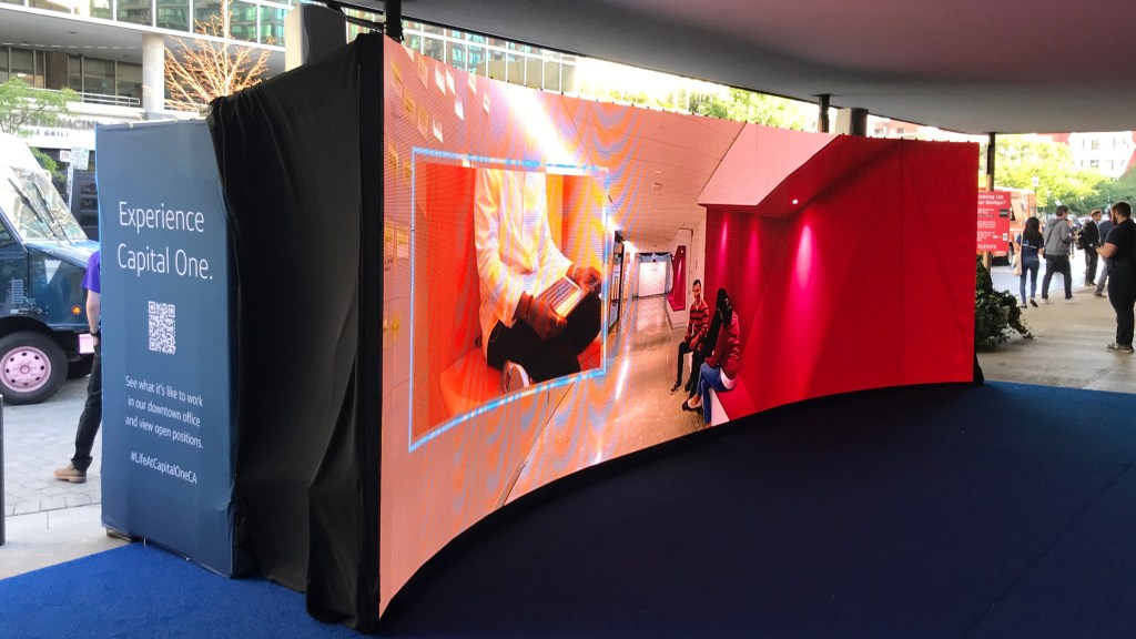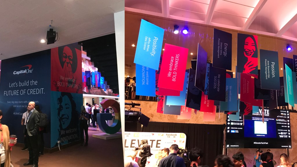 In 2019, Capital One sponsored Elevate – one of Canada’s leading tech and innovation festivals. Elevate attracts talent from around the world, so we tapped into this partnership to create a recruiting experience. The experience included prominent branding outside of Meridian Hall, a video activation to show life at Capital One, and branding on the interior. I worked with the internal creative team and vendors to make sure we had a strong, consistent brand presence at the event, conveying the right messages in the right places. On the day of the event, I attended to supervise the set up and make sure our vision came to life.